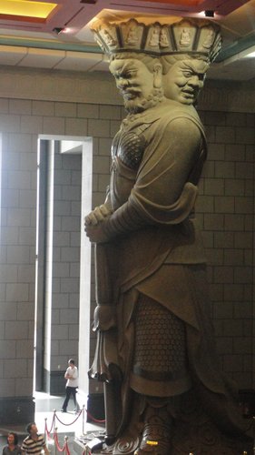以黑花崗岩雕塑成的四大天王,高12米,分鎮殿堂四方,深具禪意的佛教藝術作品