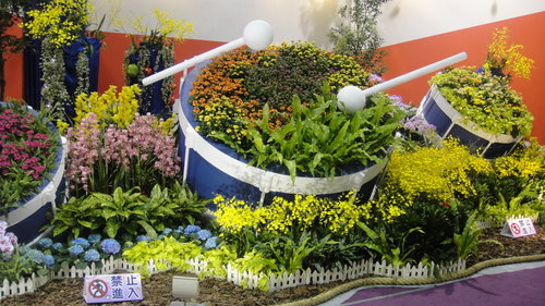 以各色蘭花堆疊出的山谷,氣勢壯觀