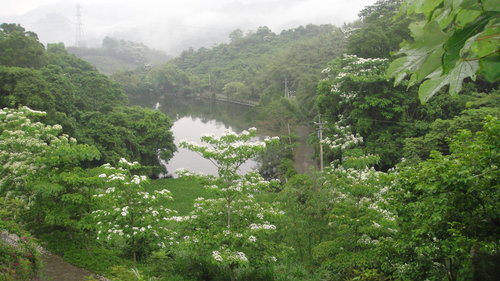 在水一方咖啡屋小徑,美不勝收的油桐花