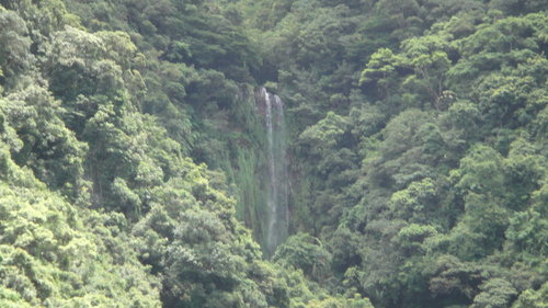 第一層瀑布瀑高50公尺,瀑水自峽谷中如萬馬奔騰傾瀉而下