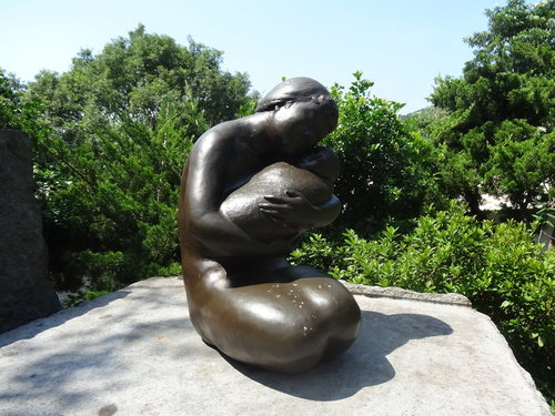 王秀杞石雕公園隱密於山徑中,仿若來到一處不為人知的秘密花園,作品以鄉土.親情.童真為主題.