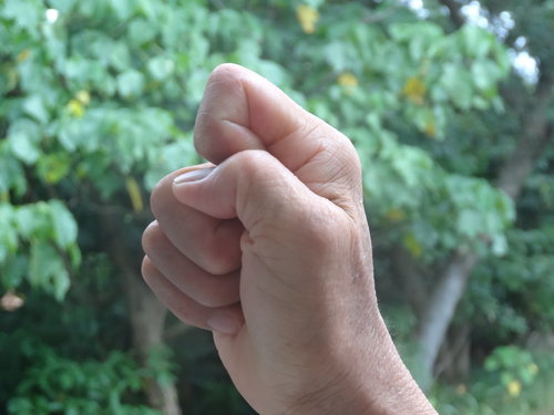 穴位位置:手握拳,第五掌骨掌橫紋頭凹陷處。