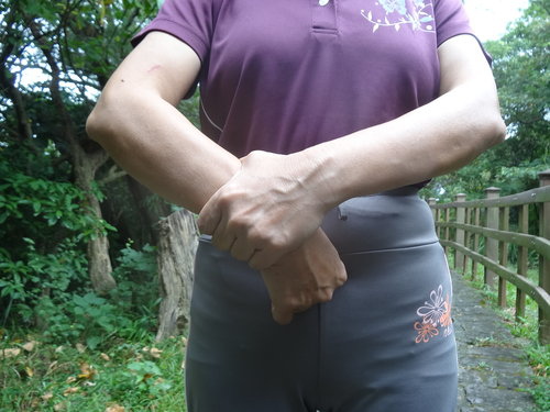 按壓方法:以右手食指弓起法,再左手握住右手腕旋轉按壓。或以雙手掌根交叉重疊旋轉按摩。