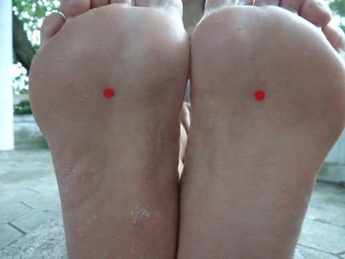 穴位位置:位於足心凹陷處,腳底肌肉形成的「人」字紋路,即位於其交叉處。