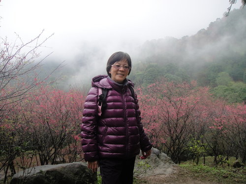 100年與同事二度來賞櫻,霧氣瀰漫更增添迷濛之美!