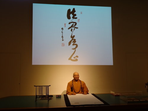 本館前的中國佛教八宗祖師雕像,重視'行門'的禪宗達模祖師.淨土宗慧遠大師.律宗道宣大師.密宗善無畏大師