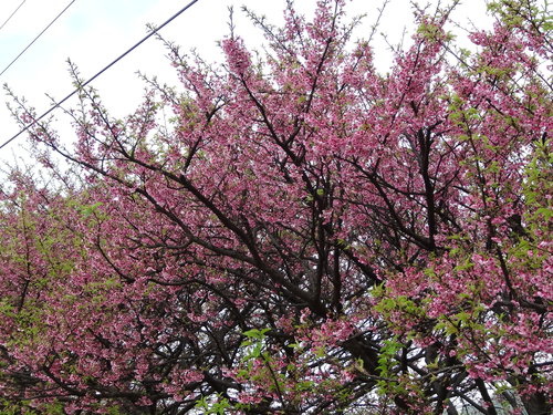 滿載的櫻花已溢出圍牆外,極致炫麗!