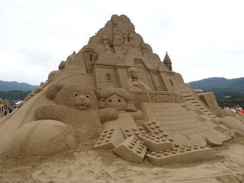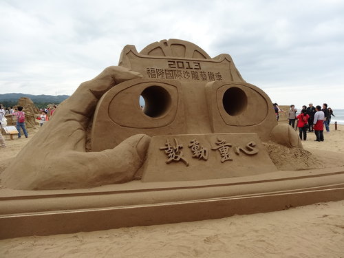 2013福隆國際沙雕藝術季主題為"鼓動童心",邀請16國家的沙雕師,結合童玩、卡通、動漫、電影和舊街景等元素,創作出77件作品,讓參觀遊客可尋找屬於自己年代童年美好時光的回憶!