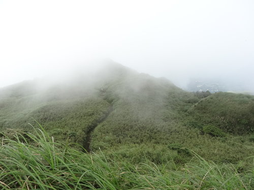 往七星山主峰步道約300公尺,仍籠罩在雲霧當中。