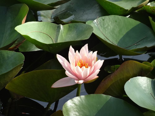 荷花依偎在荷葉下,更顯得紅潤欲滴!