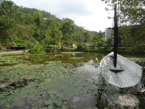 紙教堂所在地,原是一片荒煙蔓草,塗丁芳老先生兒子塗龍雄支持,紙教堂才能在依山傍水的環境中有了新家,其後在信義房屋「社區一家」計畫的贊助下,完成生態池及周邊綠化工作。