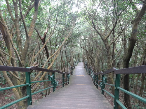 大崙頭山是台灣小百岳No:08,海拔476公尺,森林步道全長1200公尺,木棧道佔有1000公尺,一條相當特色的木板架高的步道。