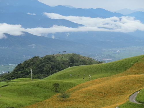 遠眺山巒雲霧飄渺,更襯托出金針花海之美!